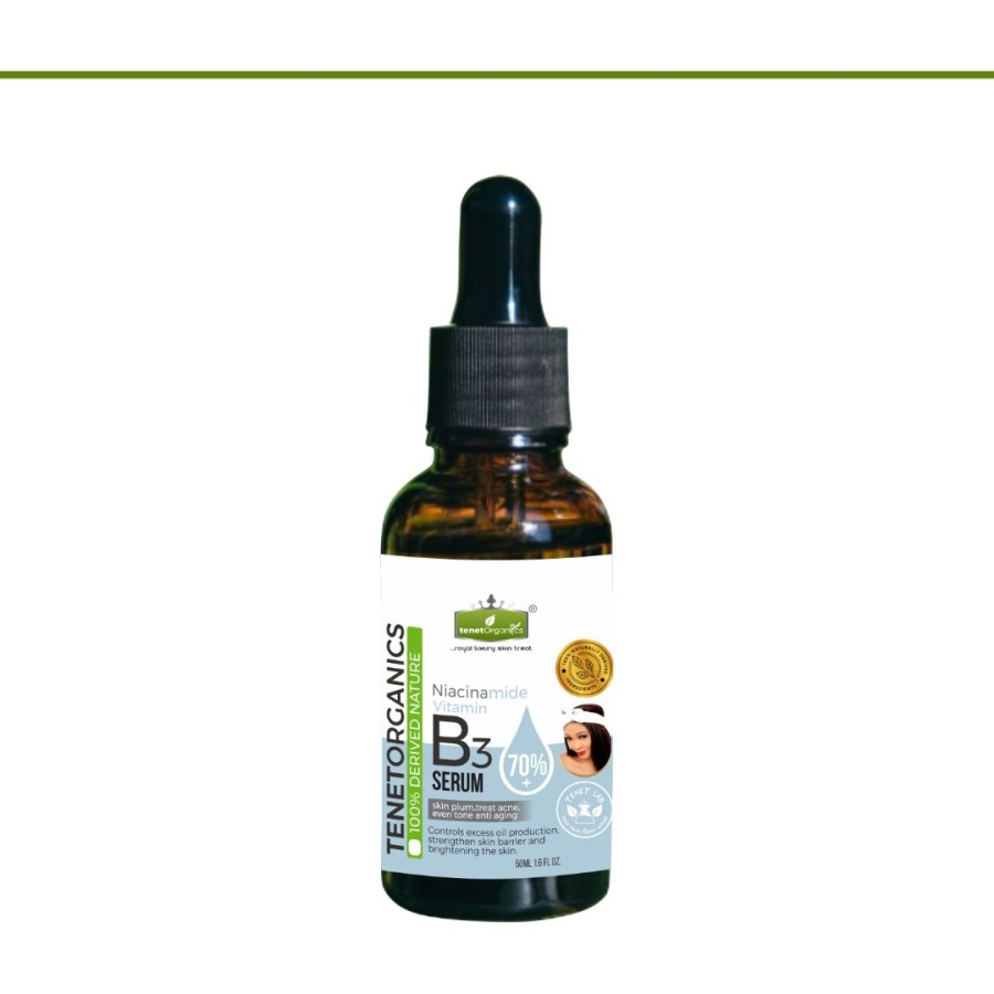 Tenet Organics Niacinamide Facial Serum is infused with Vitamin B3 (70%) and Mulberry Extract (5%) suitable to brighten the skin, controls excess oil production and strengthens skin barrier.